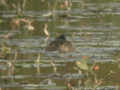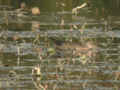 Plain brown upperparts with reddish patch on the scapulars, plain grey-brown flanks, paler, whitish undertail-coverts, dark upperwing (greenish?), green speculum with white edge save for the inner feather(s) côté droit/right side :